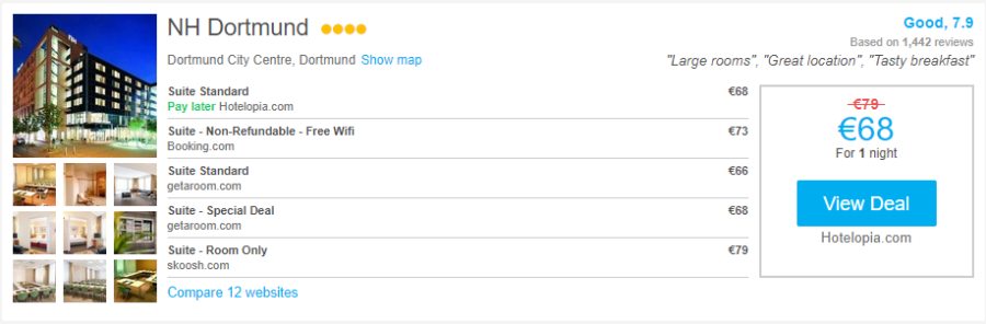 7. Дортмунд, готель NH Dortmund, ціна 68€ за двомісний номер за добу