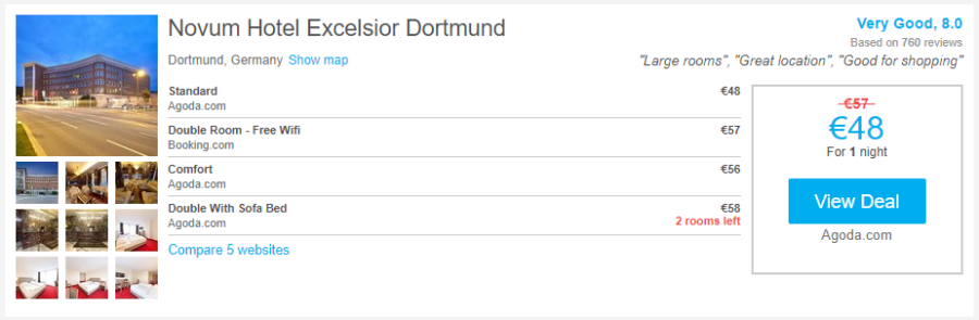 8. Дортмунд, готель Novum Hotel Excelior Dortmund, ціна 48€ за двомісний номер за добу