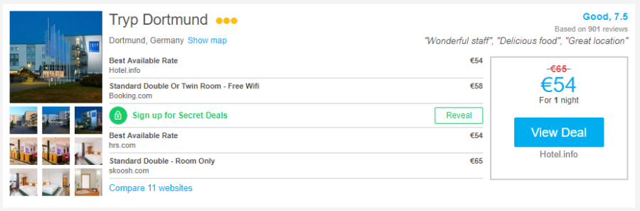 10. Дортмунд, готель Tryp Dortmund, ціна 54€ за двомісний номер за добу
