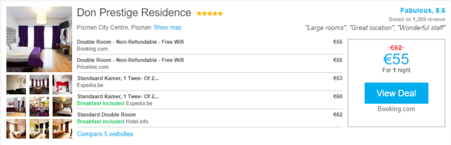 2.Познань, готель Don Prestige Residence, ціна 55€ за двох за добу
