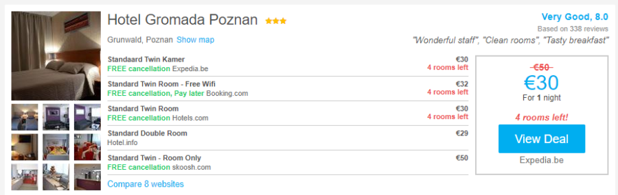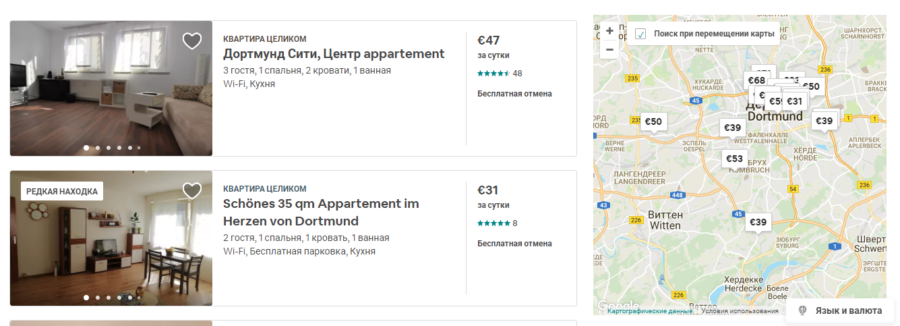 Порівнявши ціни на готелі, бачимо, що вигідним варіантом є оренда квартири, особливо якщо ви подорожуєте групою 3-4 особи і більше. Ось ціни на квартири в Познані та Дортмунді (за добу):