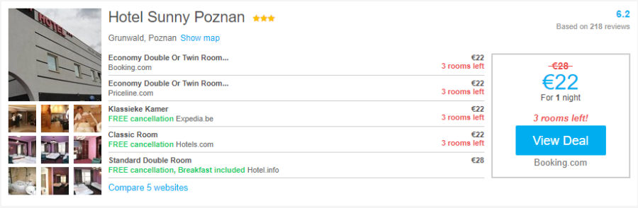 5. Познань, готель Hotel Sunny Poznan, ціна 22€ за двомісний номер за добу