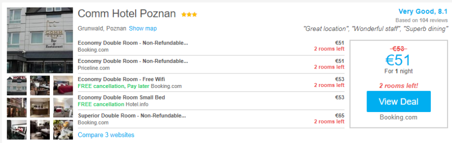 4. Познань, готель Comm Hotel Poznan, ціна 51€ за двомісний номер за добу