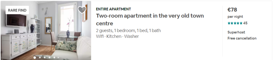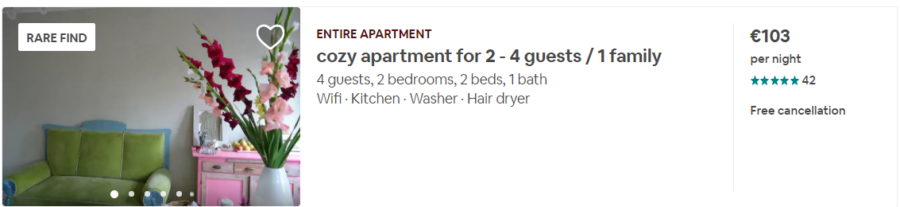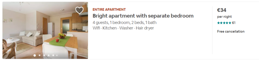 Зверніть увагу, що до вартості житла при бронюванні буде додано сервісний збір та плату за прибирання, тому є сенс бронювати квартиру на довший термін, наприклад, на тиждень. Крім того, на ваше перше бронювання застосовується знижка в розмірі 42€, отримати її можна тут. Якщо бонус вас не влаштовує, спробуйте переключити мову та валюту внизу сторінки (величина бонуса змінюється залежно від мовної версії сайту).