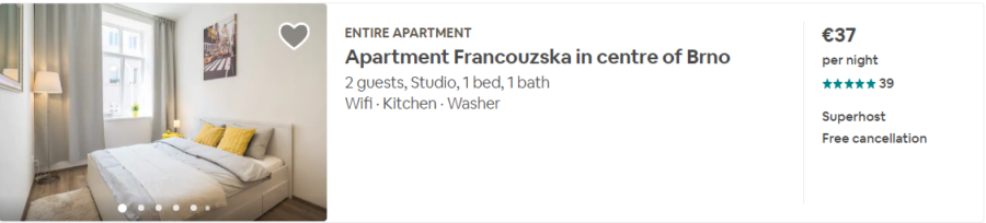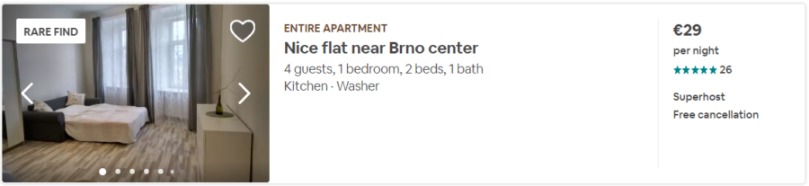 Квартири у Брно, Чехія (ціна за добу для двох, оренда цілої квартири):