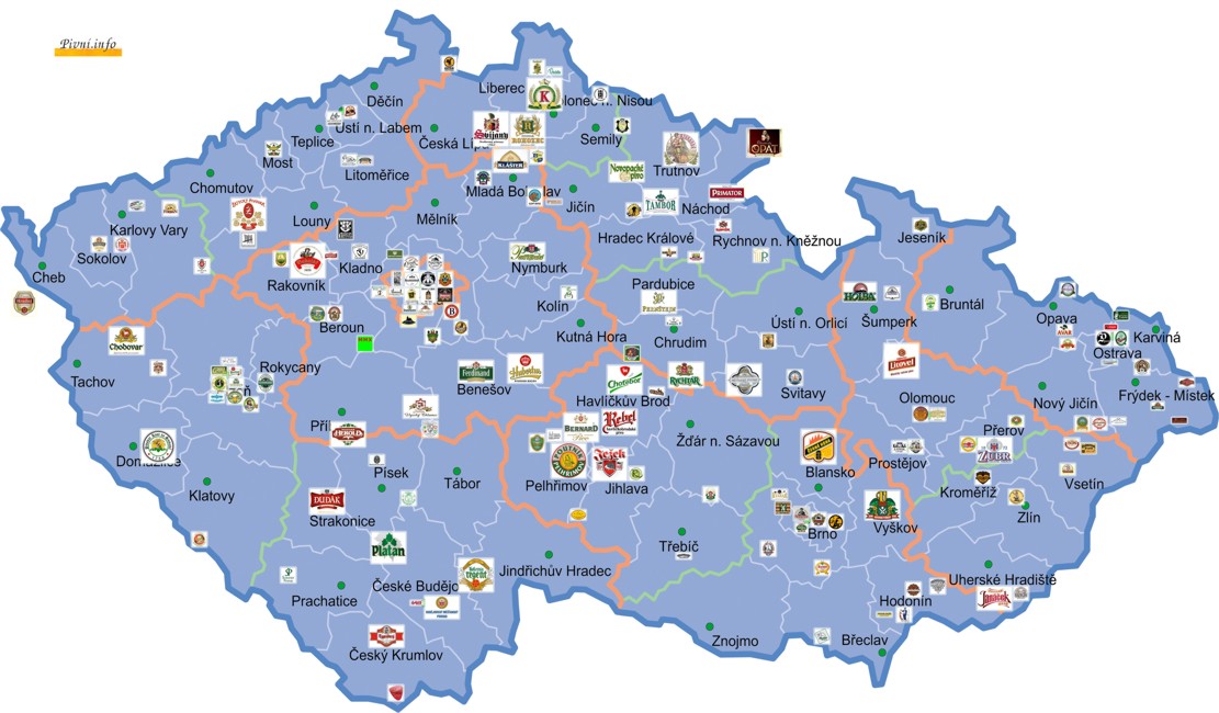 Біля кожного з сортів прикріплена табличка, яка повідомляє, в якому регіоні Чехії, Європи чи світу вироблене дане пиво. Існує навіть ціла пивна карта, що висить справа на стіні при вході до магазинчика.