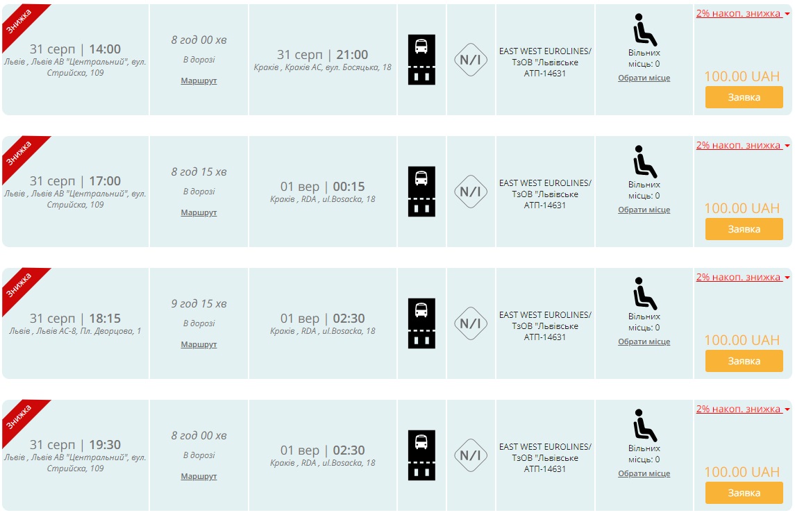 Автобусний перевізник EastWest Eurolines пропонує квитки з України до Польщі за 100 грн.! Акція дійсна на квитки до кінця листопада для зареєстрованих користувачів. На акційні квитки не поширюється процедура бронювання та повернення.