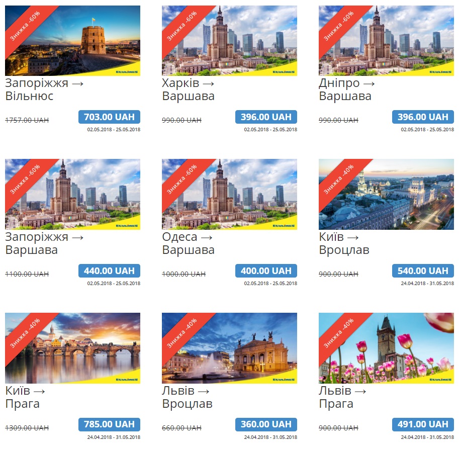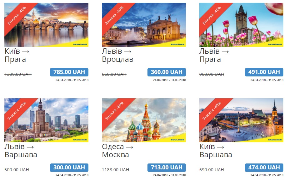 До кінця травня автобусний перевізник Ecolines знижує ціни на квитки з України до Європи від 40% до 60%. Акція розповсюджується на подорожі до 27 червня.