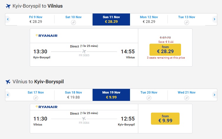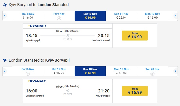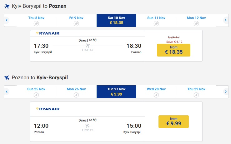 Сьогодні Ryanair влаштовує чергову акцію та розпродує квитки по 10 євро в одну сторону. Наводимо багатенько напрямків з Києва, але такі ж є і зі Львова (перевіряйте свої маршрути):