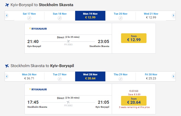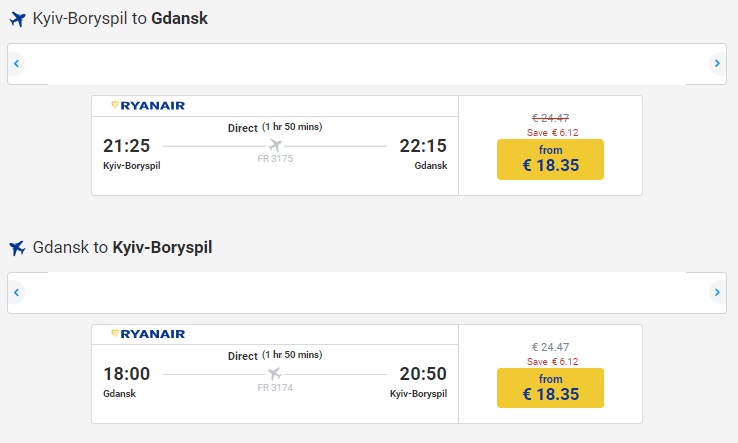 Хмара авіаквитків Ryanair з Києва від 9,99€: Польща, Великобританія, Швеція, Словаччина!