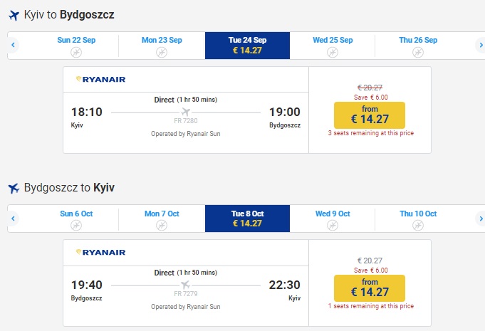 Витратили кошти на відпустку, але хочеться ще? Чому б не запланувати свою наступну подорож восени? Ми підібрали кілька бюджетних авіаквитків до Польщі та Словаччини, які вам сподобаються. Щоб перейти до квитка, натискайте на лінк в заголовку.