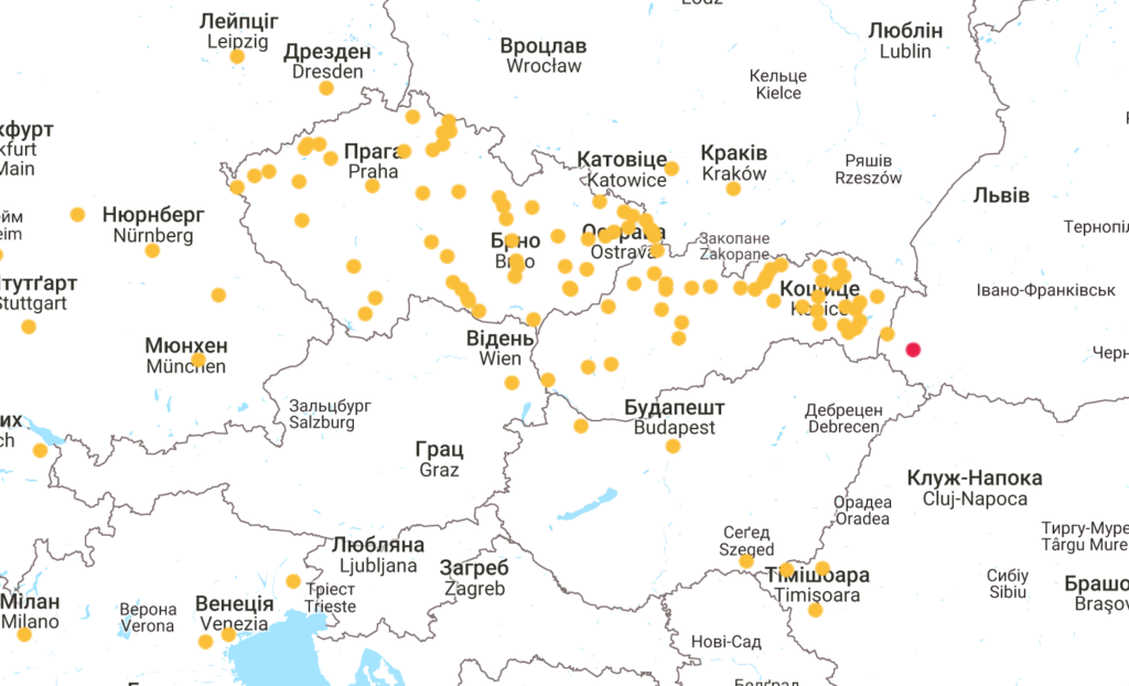 - Сполучення України з Чеською Республікою безпосередньо пов’язане з відправленням жовтого поїзда RegioJet на трасі Кошице–Жиліна–Острава–Прага.