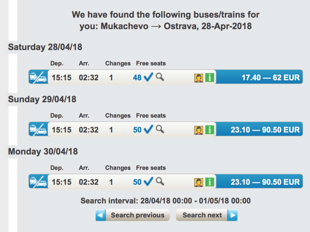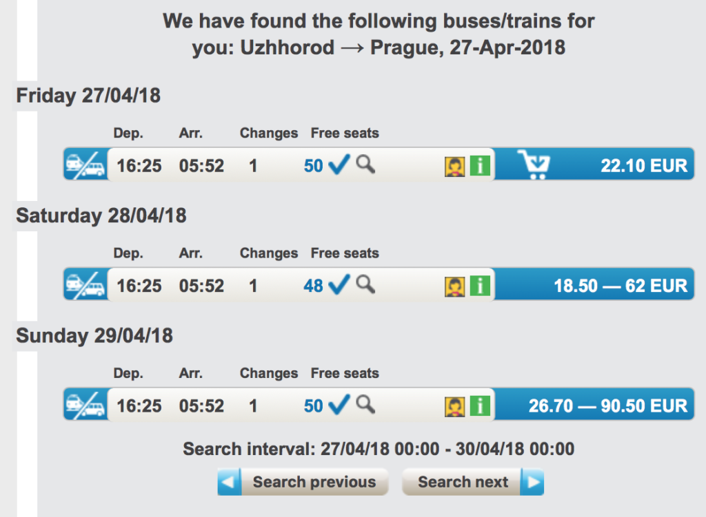- Час їзди Кошице–Прага становить 7 год. 17 хв.