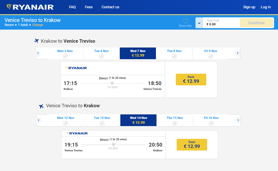 Краків – Венеція – Краків: від 26€ / 112 zł у жовтні – листопаді;