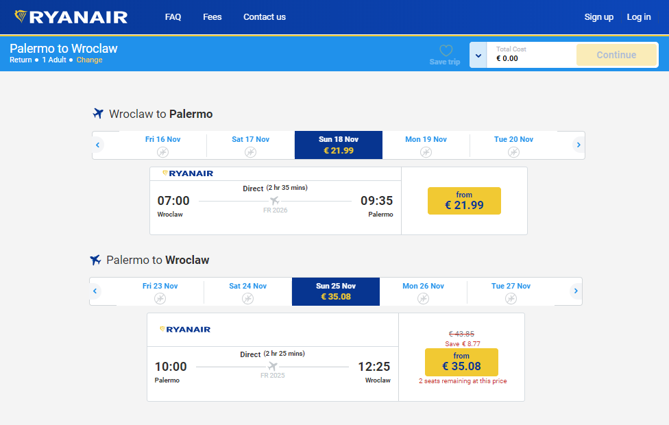Вроцлав – Палермо – Вроцлав: від 57€ / 240 zł у жовтні – листопаді;