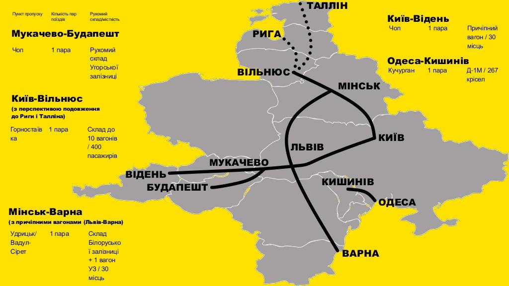 Нагадаємо, “Укрзалізниця” проводить роботу, спрямовану на запуск вже до кінця поточного року безпересадкового поїзда на маршруті Київ-Відень. “Незабаром має почати курсувати друга пара поїздів Hyundai Rotem сполученням Київ-Перемишль, маршрут якого пройде через Вінницю, Хмельницький та Тернопіль. Зараз працюємо над тим, щоб вже з грудня цього року запрацювало безпересадкове сполучення Київ-Відень”, – поінформував Балчун про плани УЗ у зв’язку з введенням безвізового режиму з ЄС і активізацією пасажирських перевезень на західному напрямку.