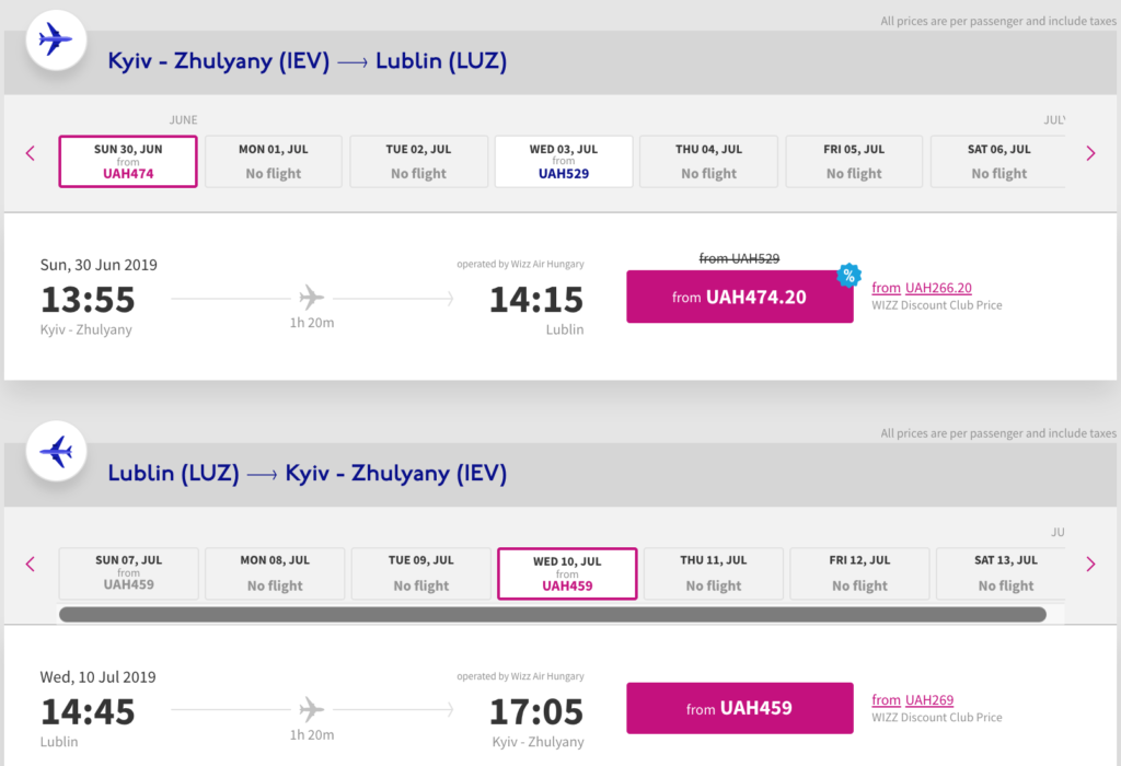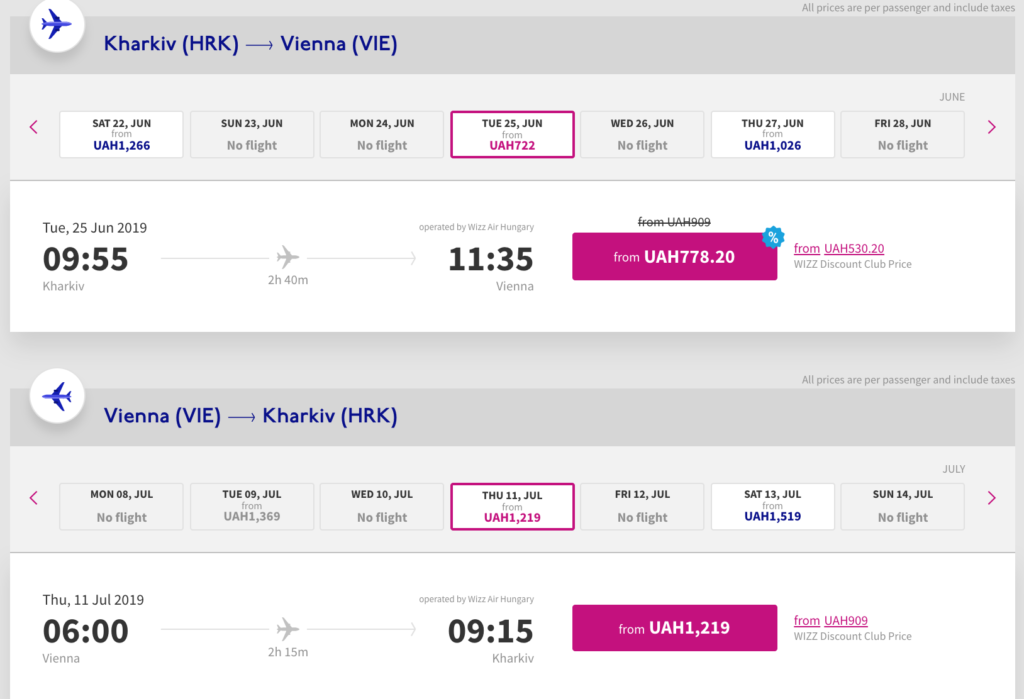 Wizz Air проводить акцію, що дає знижку на авіаквитки в розмірі 20%. Період подорожі – до червня 2019 року.17 Придбати дешеві квитки можна лише 17 травня 2019 року.