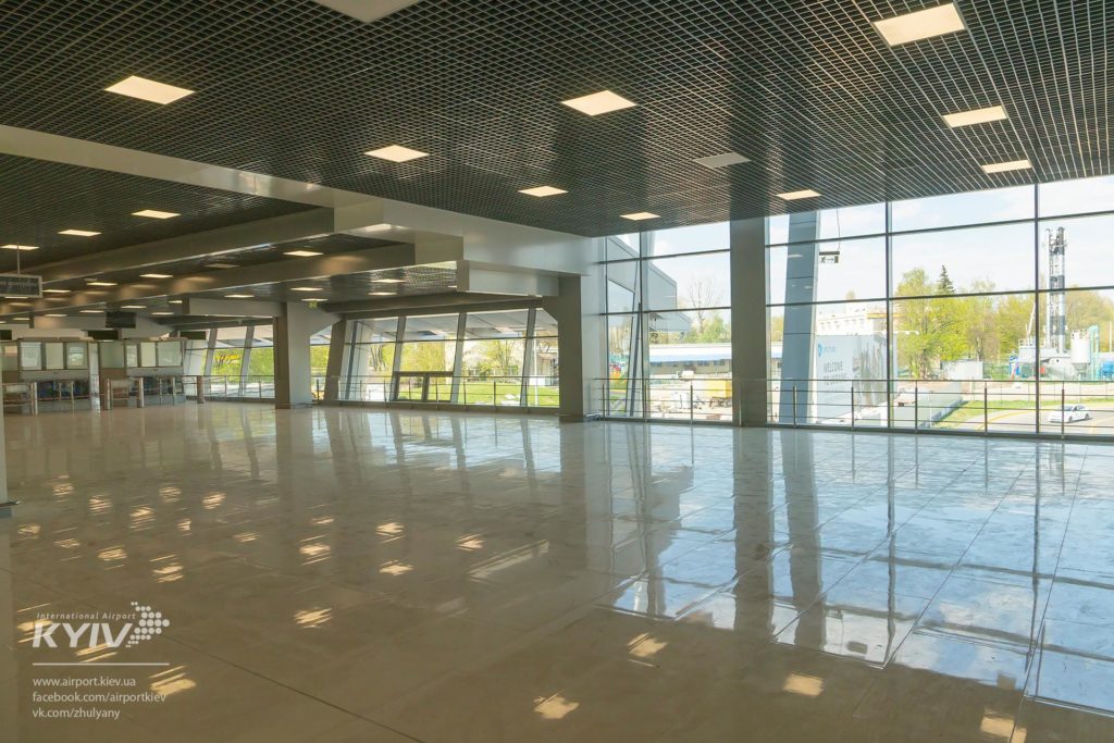 Київський аеропорт завершує розширення терміналу “А”. За офіційною інформацією, пропускна здатність терміналу збільшиться вдвічі. Площа терміналу наразі становить 14 200 кв.м, нова площа додасть ще 9 500 кв.м.